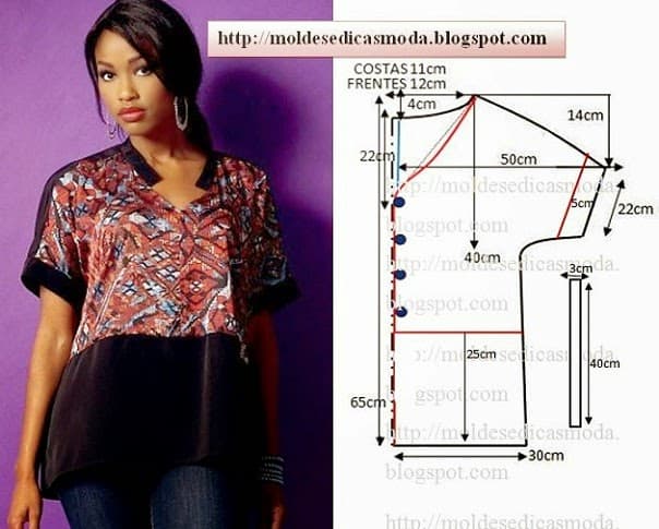 Para fazer este blusa de dois tecidos siga o passo a passo do corte e costura. A sequência operatória tem o objectivo de ajudar quem tem menos experiência em corte e costura.