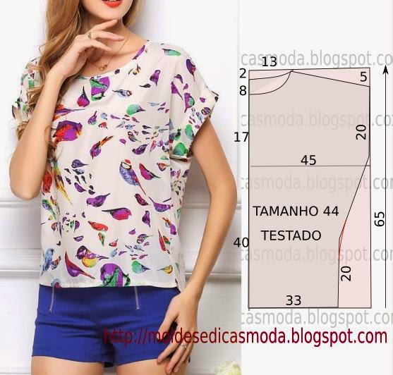 Faça a analise de forma detalhada do desenho do molde de blusa manga quimono . Blusa simples e bela, veste de forma descontraída e elegante. ...