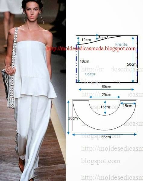 Faça a análise de forma detalhada do desenho do molde de blusa peplum. Esta blusa é simples e bela, veste de forma descontraída e ...