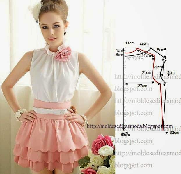 O molde de blusa com drapeado encontra-se no tamanho 38 na tabela de medidas Portuguesa e 40 na tabela de medidas Brasileira. A ilustração ...