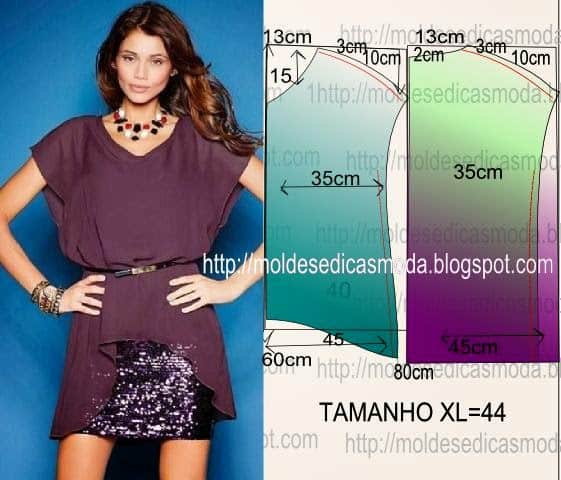 Para fazer o molde da blusa assimetrica feminina siga o passo a passo em baixo. Este trabalho é feito com rigor para facilitar a modelação do modelo da imagem.
