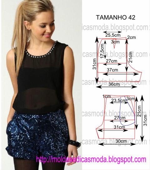 Este molde de calção de lantejoulas é fácil de desenhar. Este molde de calção favorece todo o tipo de corpos. Estas medidas correspondem ao tamanho 42 na tabela de medidas Portuguesa e 44 na tabela Brasileira.