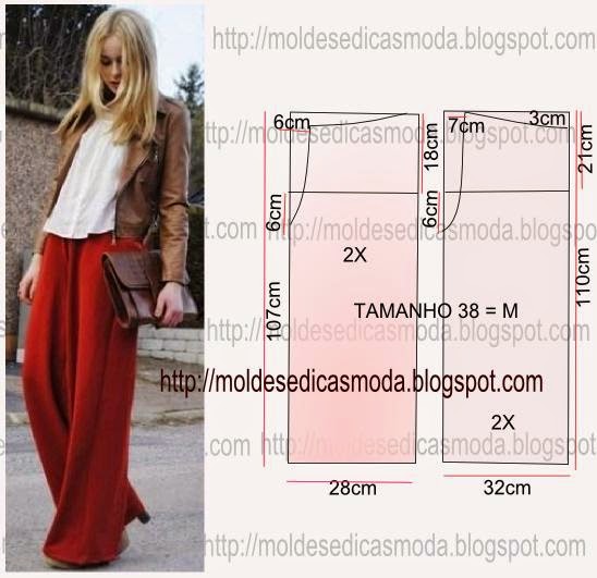 Este molde de calça pantalona vermelha é fácil de desenhar. Esta calça favorece todo o tipo de corpos. Este trabalho tem como objetivo ajudar quem não tem impressora.