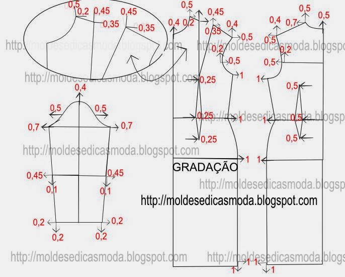 A aprendizagem do processo da gradação de base de vestido é fundamental em modelação de roupa. Muitas vezes perguntam como podem fazer um tamanho maior. Sabendo e conhecendo este método com facilidade chegam onde pretendem. Eu sei que dá trabalho interiorizar isto. Mas podem imprimir o desenho e colocar em frente ao molde e ir fazendo os acertos.