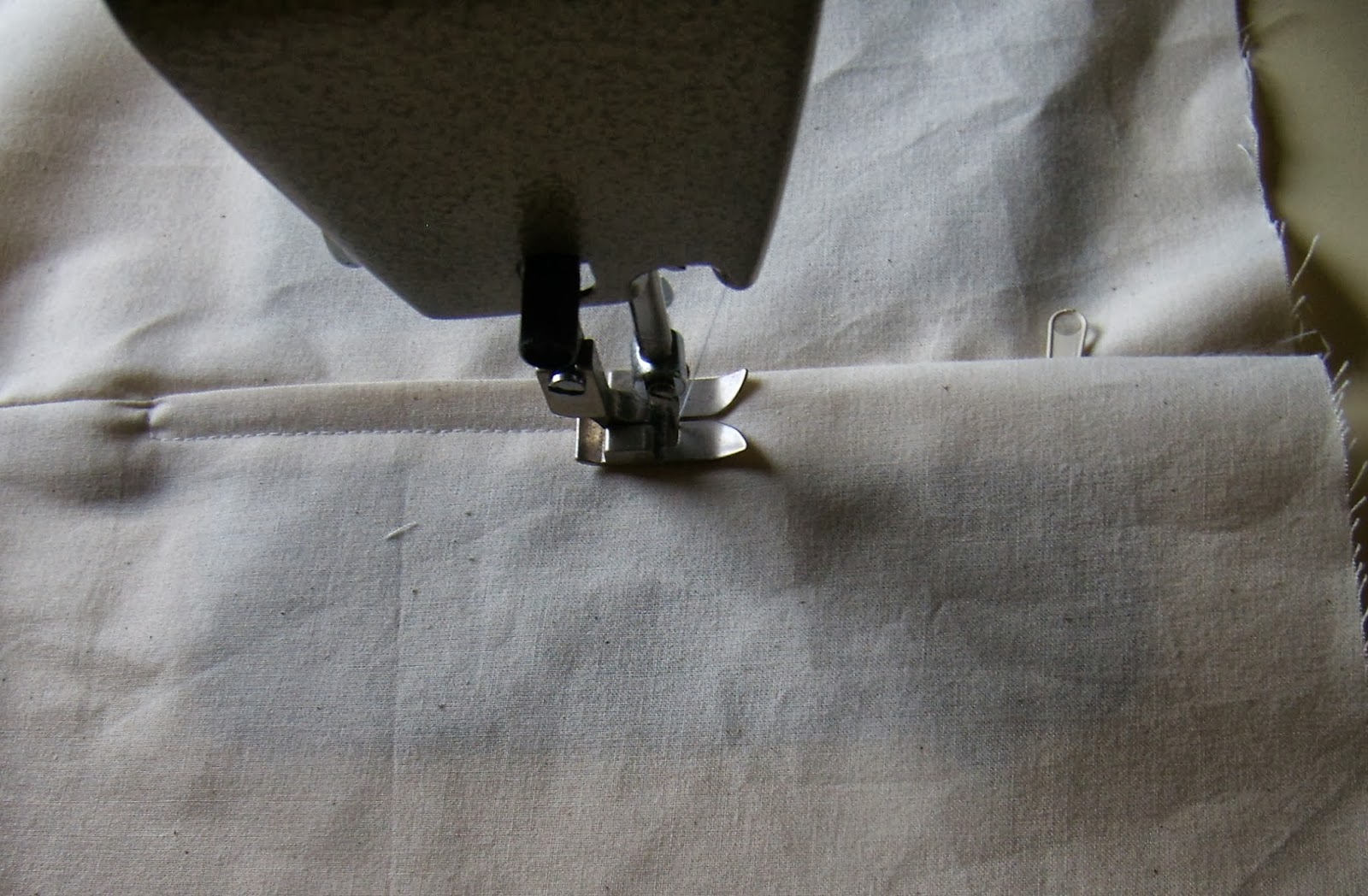 Costure deixando mais ou menos a largura do calcador (5 a 6 mm) por forma a cobrir o fecho ou ziper e a formar uma pestana.