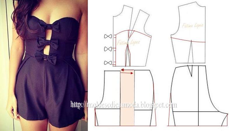 Com a chegada do tempo quente a proposta de hoje tem como objectivo ajudar a fazer o molde deste belo macacão curto com laços.
