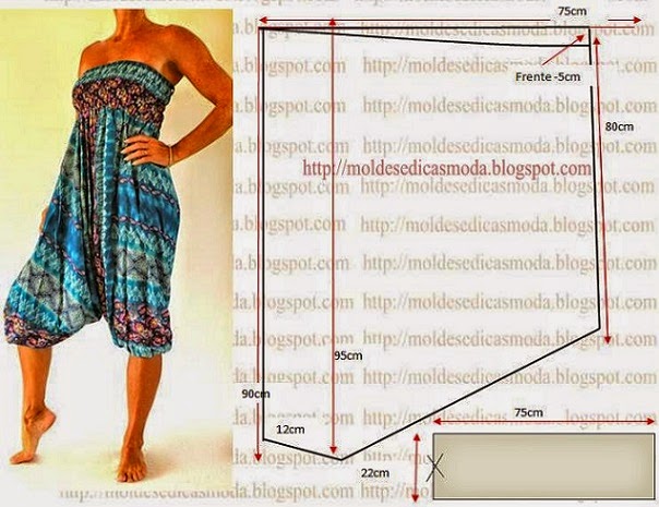 Faça o molde de macacão coral com base nas medidas da imagem. O grau de dificuldade de costura é médio. Faça o molde em papel ...
