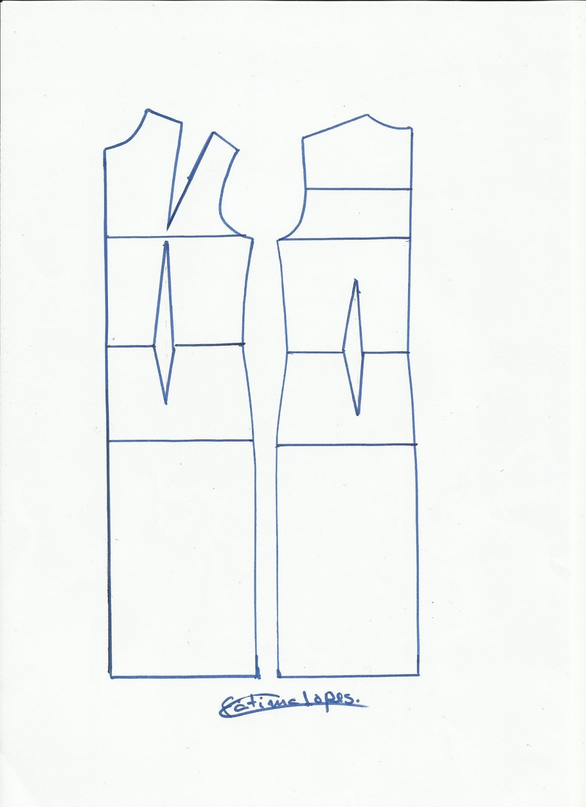 O modelo que proponho hoje é um vestido verde curto. Primeiramente vou ensinar a construir o molde a partir do molde base. Portanto assim ...