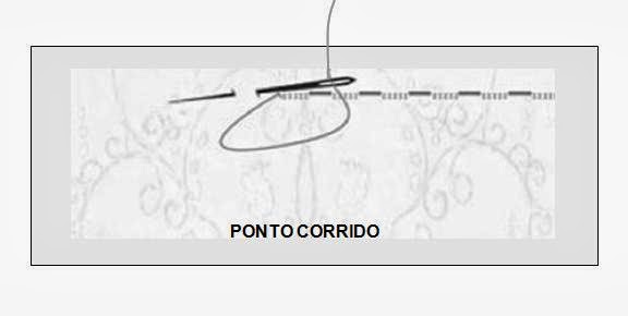 PONTO CORRIDO - É como o alinhavo, mas com um espaçamento bem menor das linhas tracejadas. Ajuda quando estamos a coser na máquina e rebenta a linha e temos de emendar o fio.