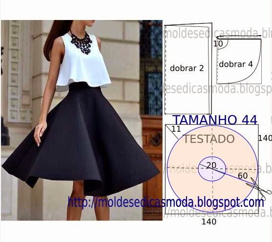Este molde de saia godé com medidas tem como objectivo ajudar quem não tem impressora. Estas medidas correspondem ao tamanho 42 na tabela de medidas Portuguesa e 44 na tabela Brasileira.