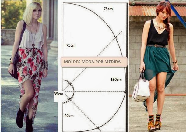 Faça o molde de saia longa com as medidas que a imagem sugere. Como pode reparar este modelo pode vestir alguns tamanhos por essa ...