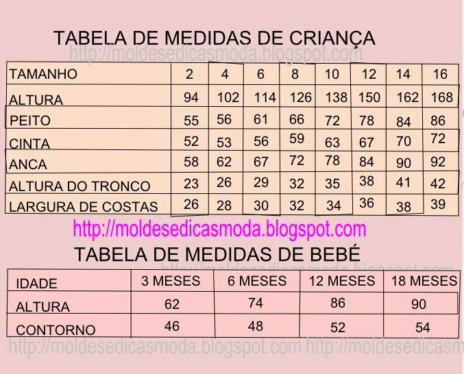 Esta tabela abrange as idades dos 3 meses aos 16 anos. Têm surgido alguns pedidos de molde para tamanhos até 16 anos, agora pode alterar os tamanhos recorrendo a esta tabela de medidas. Espero que seja útil para alterar as medidas dos modelos já publicados. Também dos muitos modelos que penso publicar de hoje em diante. Assim poderão desenhar os modelos para as idades que pretendem.