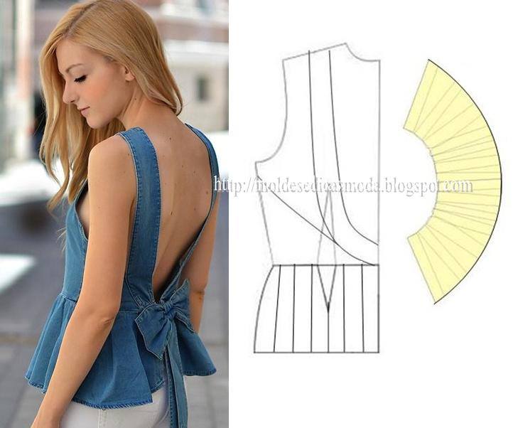 Para fazer o molde desta blusa jeans peplum feminina siga o passo a passo em baixo. O passo a passo tem o objectivo de ajudar quem tem menos experiência em modelagem de vestuário.