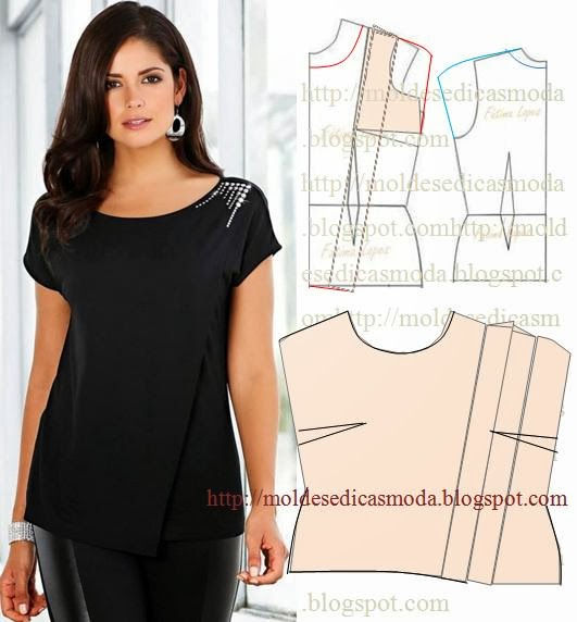 Para fazer o molde de blusa preta transpassada siga o passo a passo. Este trabalho tem como principal objectivo ajudar a concretizar o molde a quem tem pouca experiência em modelagem de roupa.