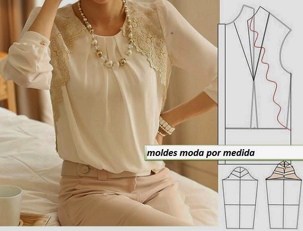 Para fazer o molde desta bela blusa com renda siga o passo a passo em baixo. O objectivo do passo a passo é facilitar quem tem mais dificuldade no desenho do molde da blusa.