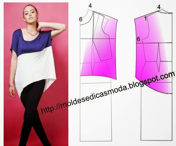 Faça a blusa azul e branca lendo atentamente o passo a passo da transformação do molde base. Depois de compreender este método com facilidade faz todos os modelos que encontra na página.