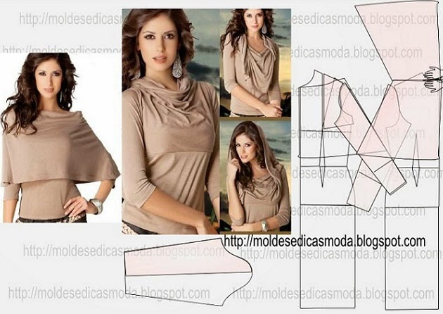 Para fazer a blusa com gola capa leia com atenção o passo a passo. Depois de obter o molde é mais fácil concluir o modelo. Parece complicado pela quantidade de tecido mas parece mais do que é na verdade.
