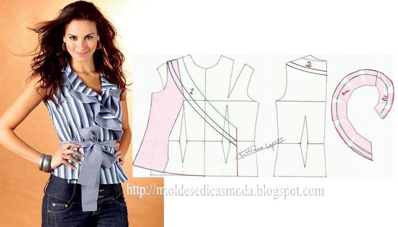 O visual lindo desta blusa de trespasse com babado não vai deixar ninguém indiferente. Para fazer o molde siga o passo a passo em baixo. Este trabalho é feito com o rigor que se exige.