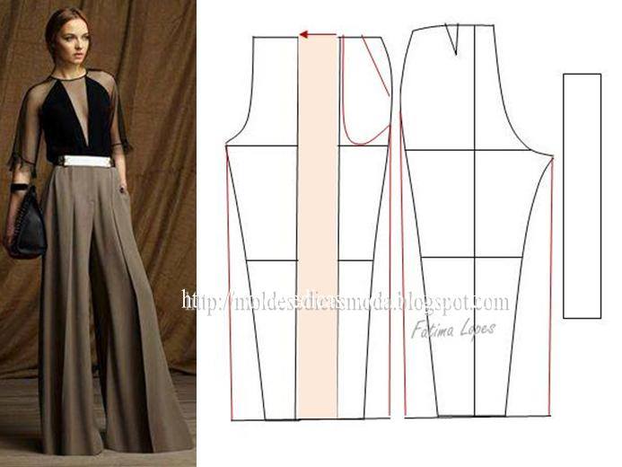 Faltava abordar o passo a passo do molde da calça pantalona com pregas nesta página. Têm chegado com frequência alguns pedidos de abordagem deste modelo.