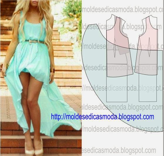 Faça o molde do vestido de festa assimétrico seguindo o passo a passo em baixo. Este trabalho é sempre elaborado com rigor para facilitar a modelagem deste modelo.