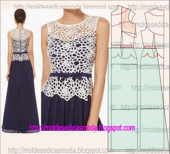 Este modelo de vestido azul com renda branca é uma bela opção para festas ou eventos de cariz social. O passo a passo do molde está explicado de forma a facilitar a conclusão do trabalho.