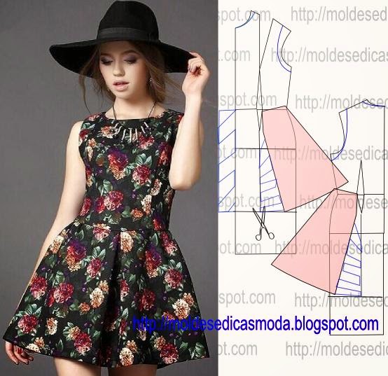 o molde base de vestido não tem valor de costura, tem que ser acrescentado. Este modelo de vestido fica bem com tecido/tela em seda, renda, malha, veludo, sable, cetim, organza e todos os tecidos que tenham bom caimento. Folga 5% (exemplo em um metro 5 cm de folga), para confecionar este modelo, são necessários, 3 metro tecido . São necessárias duas ou uma altura de tecido conforme a largura da peça. Clique nos link's em baixo para fazer o molde de vestido floral com saia em evasê ao seu tamanho .