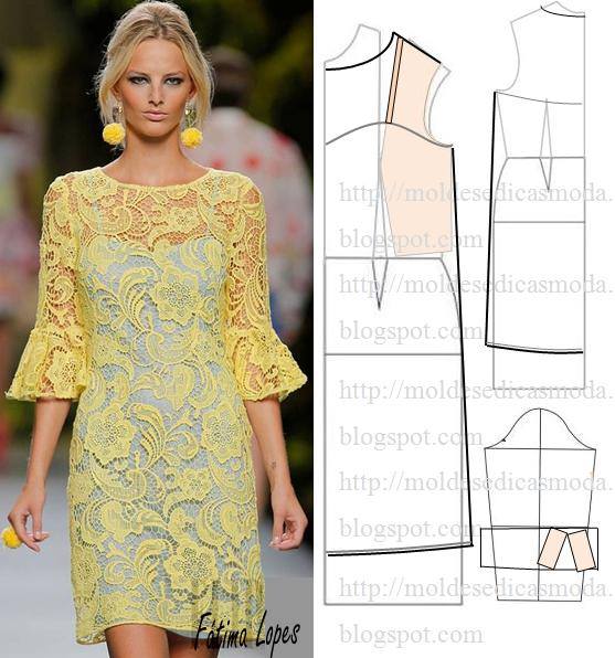 Hoje vou abordar o passo a passo do molde deste belo vestido amarelo curto de renda. Parece-me um modelo capaz de fazer as delicias de muitas seguidoras por essa razão não podia deixar de o publicar.