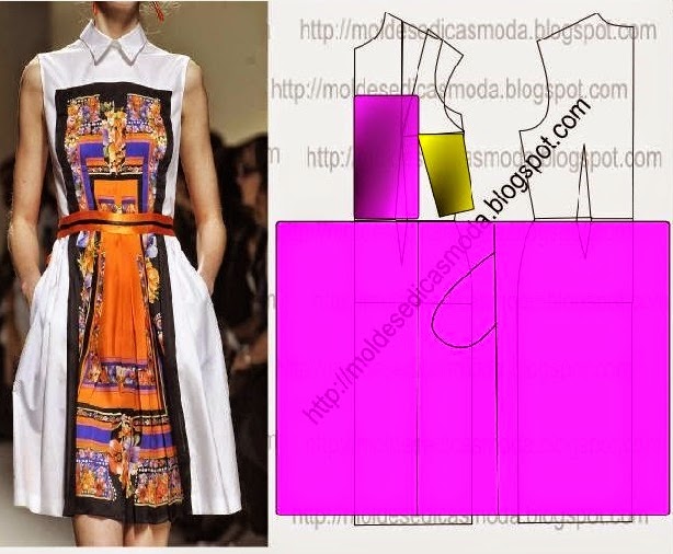 Com estilo moderno e vanguardista este vestido com gola de camisa andou pelas passarelas de todo o mundo. Para obter o molde deste modelo de vestido siga o passo a passo.