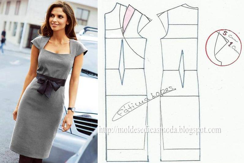 O molde base não tem valor de costura, tem que ser acrescentado. Faça o seu molde base recorrendo aos links que encontra por baixo da imagem. Depois de imprimir o molde base mais próximo do seu tamanho faça a gradação para obter o tamanho que deseja. Faça as alterações que a imagem sugere. A escolha do tecido também é importante peça a opinião ao responsável da loja dos tecidos. Os moldes de roupa deste blog são grátis. Para fazer este vestido com decote quadrado veja os links em baixo.