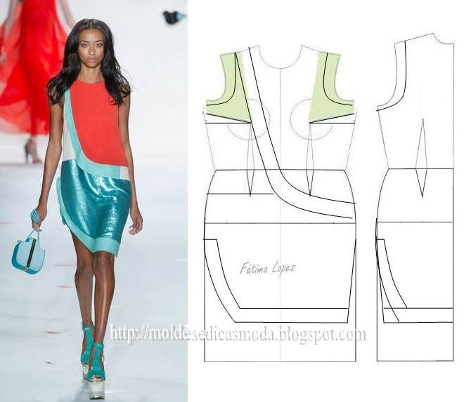 O molde base não tem valor de costura, tem que ser acrescentado. Faça o seu molde base imprimindo o mais aproximado e fazendo a gradação. Para isso clique nos links por baixo da imagem. Depois de fazer o seu molde base faça as alterações que a imagem sugere para obter este vestido Curto Colorido. Tenha em atenção a sequência descritiva em cima. Os moldes de roupa deste blog são grátis. links que deve usar:
