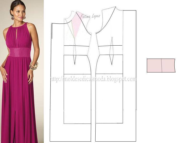 Faça a análise de forma detalhada do desenho do molde do vestido rosa. Vestido simples e arrojado que veste de forma muito elegante. VESTIDO ...
