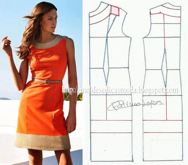 Para que não passe despercebida proponho este modelo de vestido em tecido laranja. A cor é intensa e reflecte muita energia. Siga o passo a passo para fazer o molde deste modelo.