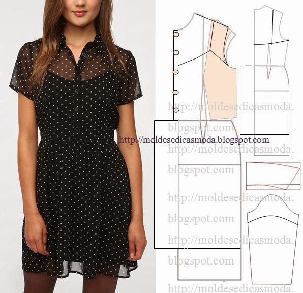 Nota: o molde base não tem valor de costura, tem que ser acrescentado. Este modelo fica bem com tecido ou tela em seda, malha, veludo, sable, cetim, organza e todos os tecidos que tenham bom caimento. Folga 5% (exemplo em um metro 5 cm de folga). Para fazer este vestido preto com tecido transparente necessita de 1,5 metros tecido bolinhas e 1 metro de liso. São necessárias duas ou uma alturas de tecido conforme a largura da peça. Faça o seu molde base de vestido recorrendo aos links em baixo.