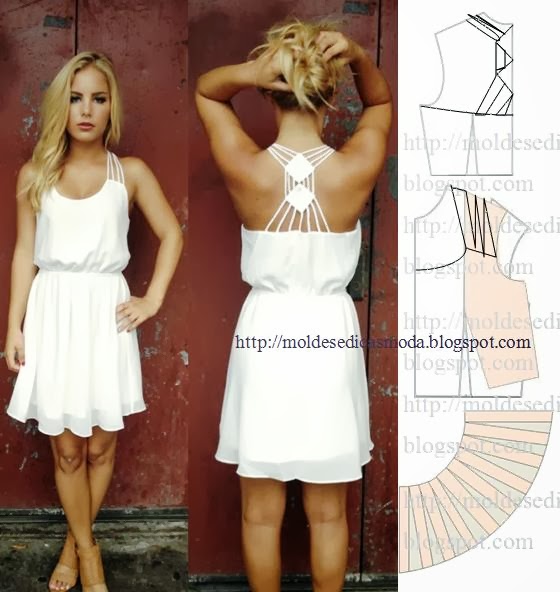 O molde base não tem valor de costura, tem que ser acrescentado. Este modelo fica bem com tecido ou tela em seda, malha, veludo, sable, cetim, organza e todos os tecidos que tenham bom caimento. Folga 5% (exemplo em um metro 5 cm de folga). São necessário 2 metros tecido para fazer este vestido branco curto. São necessárias duas ou uma alturas de tecido conforme a largura da peça. Faça o seu molde base de vestido.
