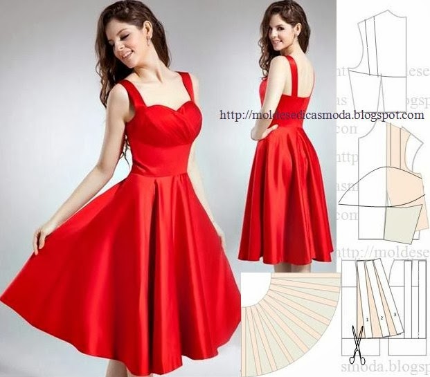 Como este modelo de vestido vermelho godê faz as delicias de muita gente vou abordar o molde com o passo a passo. O primeiro ...