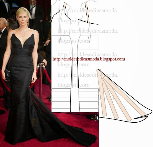 Para fazer este molde do vestido de gala preto comprido siga o passo a passo em baixo. Este trabalho é feito com rigor para ajudar quem tem pouco conhecimento ou experiência na arte de corte e costura.