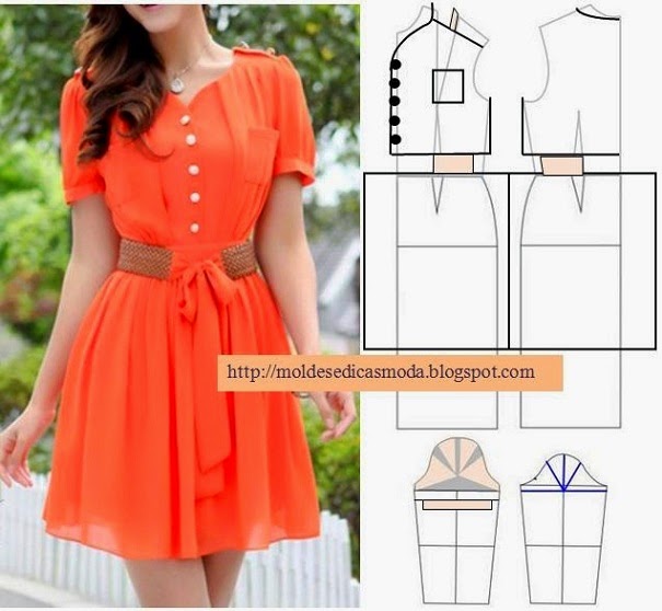 O molde base não tem valor de costura, tem que ser acrescentado. Este modelo fica bem com tecido ou tela em seda, malha, veludo, sable, cetim e organza. Todos os tecidos que tenham bom caimento são adequados para fazer este modelo de vestido. Folga 5% (exemplo em um metro 5 cm de folga). Para confeccionar este modelo de vestido laranja casual são necessários 2,5 metros de tecido. São necessárias duas ou uma alturas de tecido conforme a largura da peça. Depois de ter feito o seu molde base de vestido é fácil fazer qualquer um destes lindos e elegantes modelos.