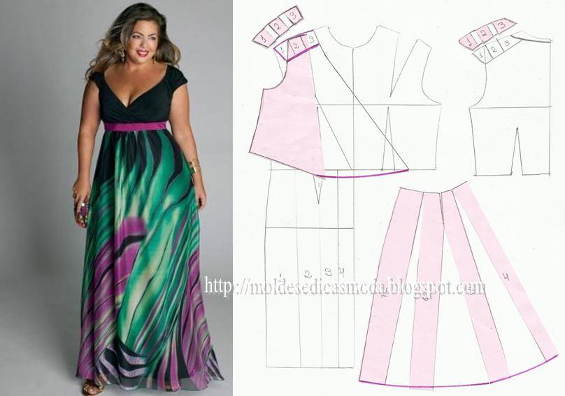 Nota: o molde base não tem valor de costura, tem que ser acrescentado. Faça o seu molde base, para isso imprima o molde base com o tamanho mais próximo do seu e faça a gradação. Depois de ter feito o seu molde base faça as alterações que a imagem em baixo sugere. Não se esqueça de fazer uma boa escolha de tecido porque é fundamental para obter o efeito desejado. Os moldes deste blog são gratuitos. Para fazer os vestidos tamanhos grandes imprima o molde tamanho 48 em Portugal e 50 no Brasil e faça a gradação para o tamanho que pretende.