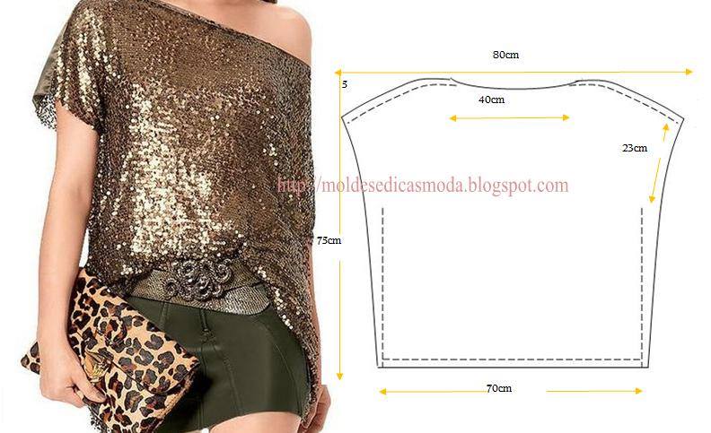 Para fazer a túnica de lantejoulas siga o passo a passo de corte e costura em baixo. Desta forma é mais fácil de fazer o modelo da imagem. É importante que assimile o processo para poder fazer outros modelos da página.