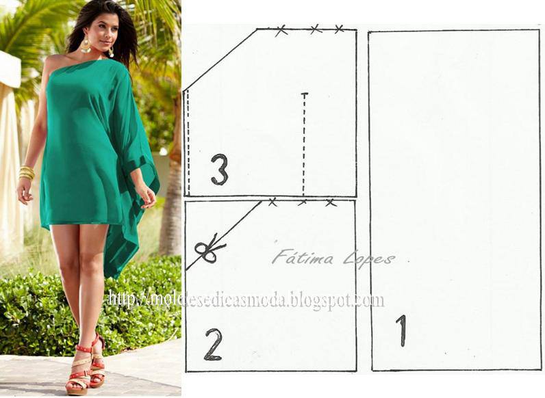 Vestido simples de cortar mas muito versátil. Este vestido é um clássico e está sempre na moda. Favorece todo o tipo de corpos. Para fazer este modelo de vestido com uma manga necessita de mais ou menos de 2 metros de tecido. Use um tecido com bom caimento. O grau de dificuldade de corte e costura deste modelo é muito baixo. É um excelente exercício para que tem menos conhecimento nesta arte.