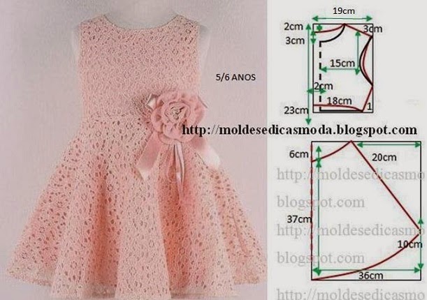 Faça o molde do vestido de criança em renda com as medidas da imagem. Este vestido veste o tamanho 5 a 6 anos. Siga o passo a passo para obter melhor resultado. O objectivo é facilitar quem tem mais dificuldade.