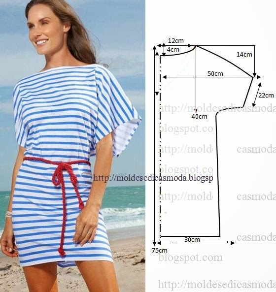 Com estilo casual e descontraído este vestido riscas azul e branco é uma espécie de clássico. Já todas nós tivemos um idêntico. Siga o passo a passo do corte e costura para facilitar o trabalho.