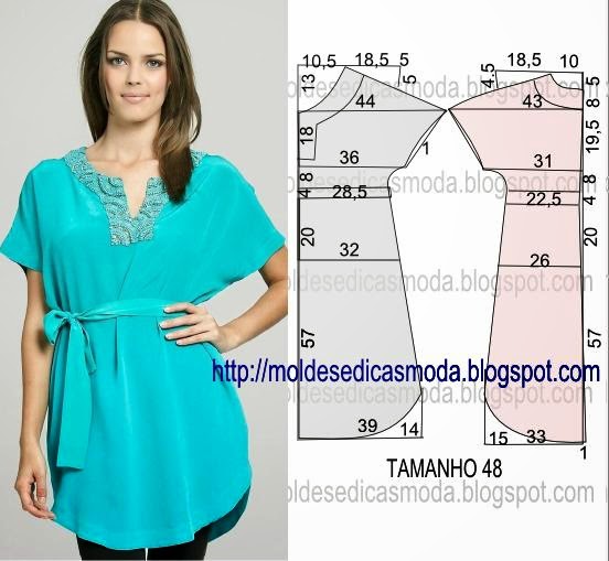 Este modelo de vestido casual azul claro é muito fácil de fazer. Siga o passo a passo para fazer o molde do vestido de forma mais fácil.