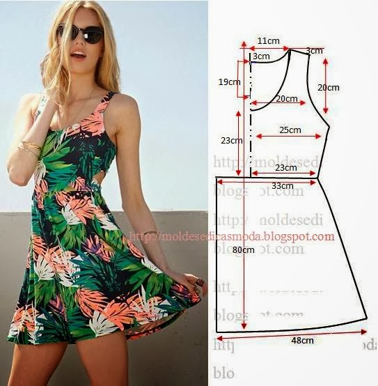 Muito fácil de fazer este molde de vestido floral encontra-se no tamanho 42 na tabela de medidas Portuguesa e 44 na tabela de medidas ...