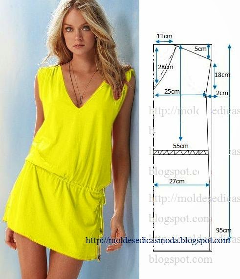 Este modelo fica bem com tecido ou tela em seda, malha, sable, organza, cetim e todos os tecidos que tenham bom caimento. É necessário 1 metro de tecido para fazer este modelo de vestido casual curto amarelo. Folga 5% (exemplo em um metro 5 cm de folga). São necessárias duas ou uma alturas de tecido conforme a largura da peça.