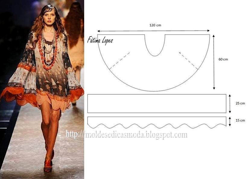 Para fazer este modelo de tunica de manga larga necessita de aproximadamente de 3 metros de tecido. Escolha um tecido a seu gosto, é essencial que tenha bom caimento. O grau de dificuldade do molde e costura deste modelo é muito baixo. Este trabalho é excelente para quem tem pouca experiência nesta arte.
